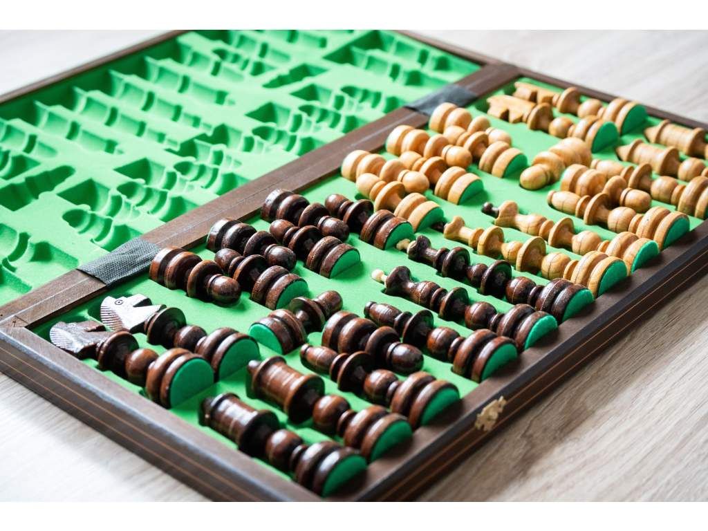 | Sakktábla típusa: | összehajtható, bábutartó rekesszel |