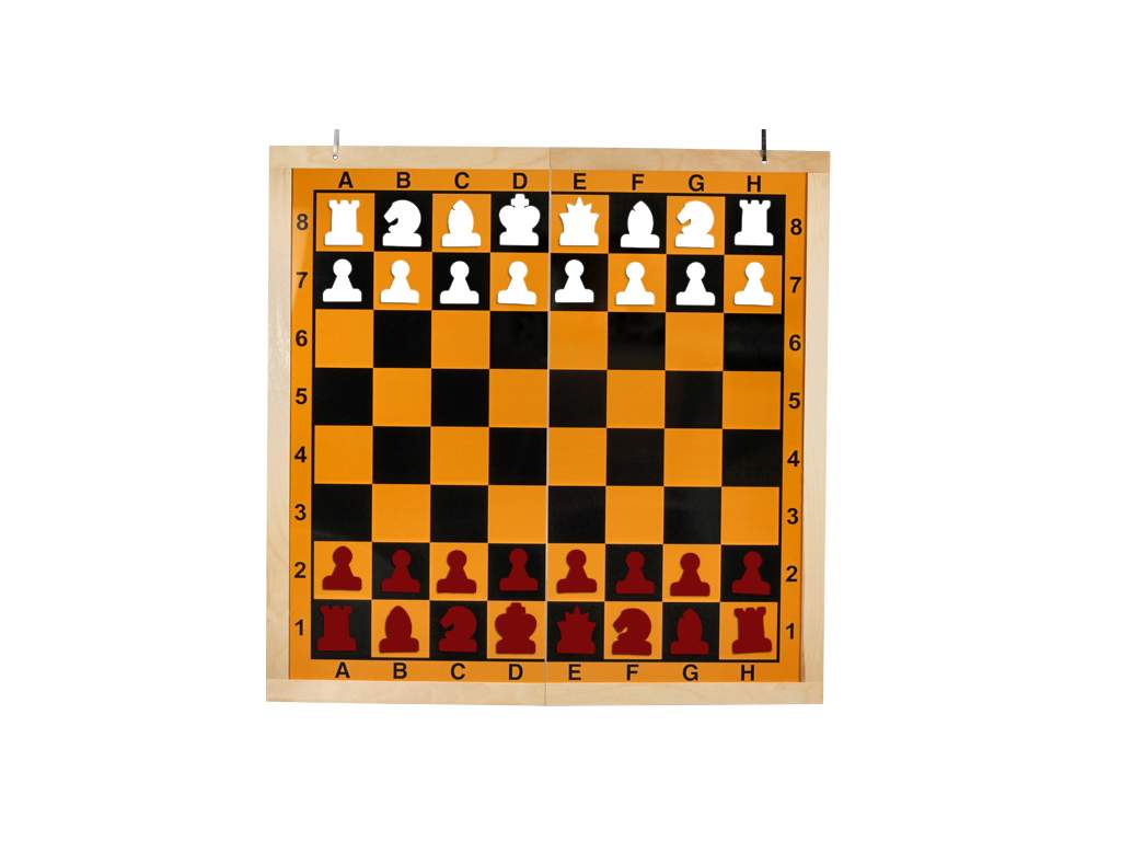 Összecsukható mágneses demonstrációs sakktábla. Falra akasztható.