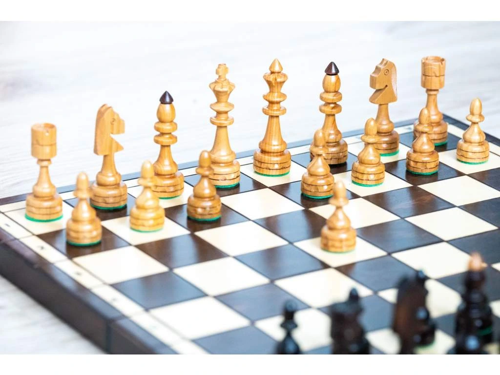 Ajándékba, otthoni vagy szabadidős játékra is alkalmas sakk-készlet. A sakkfigurák nagyon kellemes tapintásúak, méretük pedig az ideális versenymagasság.