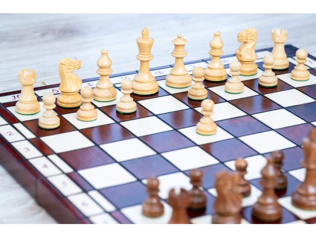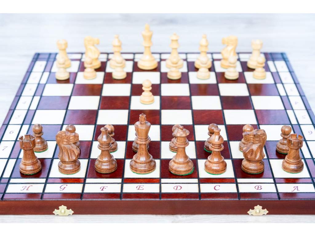 A klasszikus Staunton figurák népszerű változata luxus akácfa dizájnnal, súlyozott puha talapzattal, standard versenyméretben.