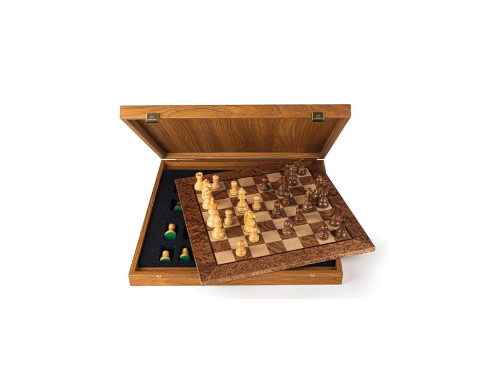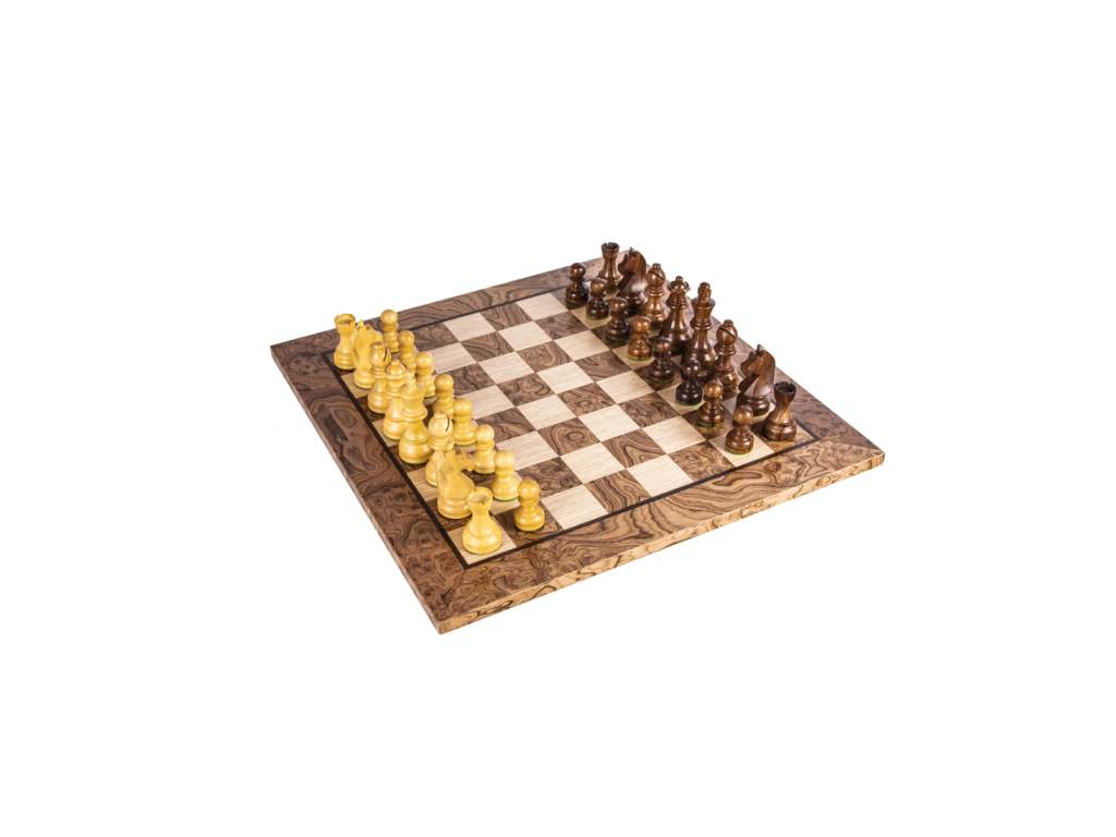 Luxus kivitelezés: A sakktábla és a bábuk polírozott felülete kiemeli a fa gazdag textúráját és szemcsézettségét, és kifinomultságot kölcsönöz játékgyűjteményének.