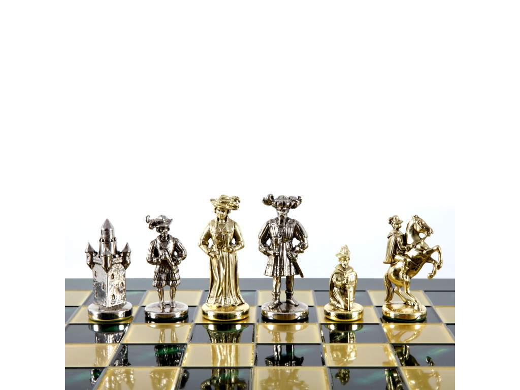 Ez a sakk-készlet aprólékosan kidolgozott kézműves munka, amely a készítők szakértelmét és elkötelezettségét tükrözi. A figurák arany és ezüst színűek, tartósak és elegánsak. A 44 × 44 cm-es bronz sakktábla minden játékszobának különleges, luxus hangulatot kölcsönöz. A figurák mindegyike a reneszánsz kor egy-egy fontos szereplőjét jeleníti meg, így ez a készlet nemcsak játékra, hanem gyűjtésre is kiváló.