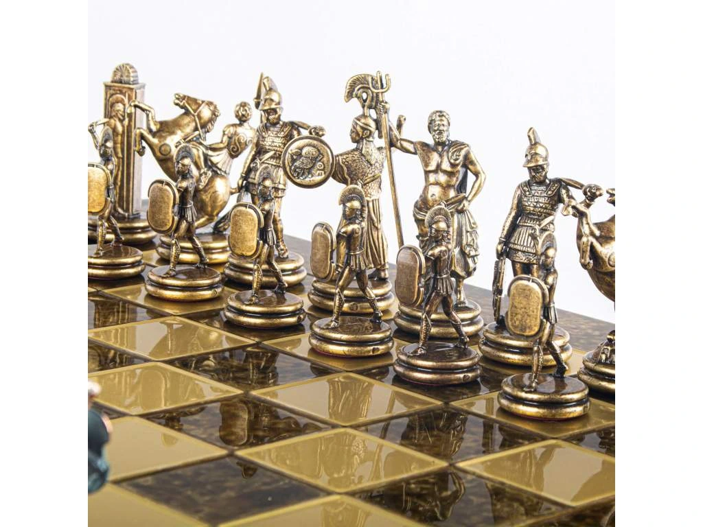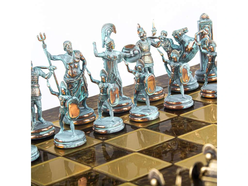 Kézzel készült sakkfigurák: Minden figura gondosan kialakított, hogy a görög mitológia ikonikus alakjait ábrázolja, és kivételes kézműves munkáról tanúskodik.