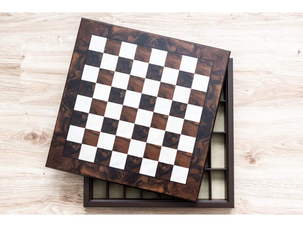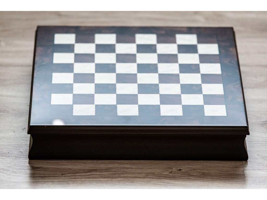 A sakktábla két részből áll (sakktábla + sakkfigura tárolóhely)