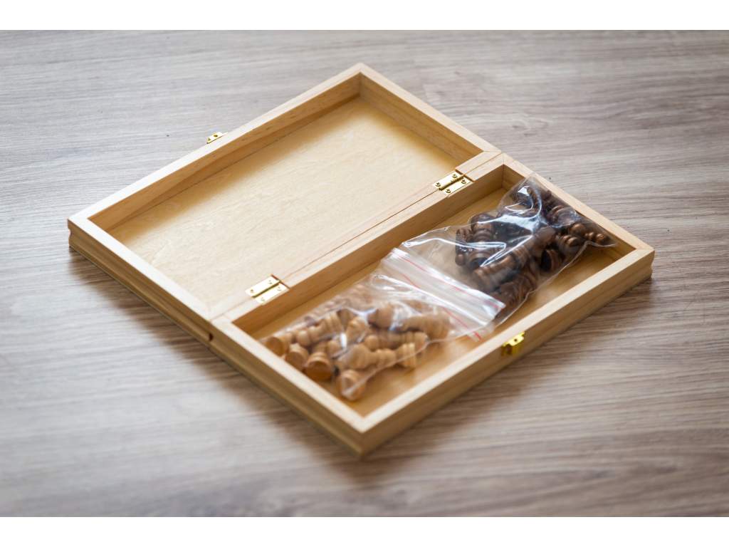 | Sakktábla típusa: | összehajtható, bábutartó rekesszel |