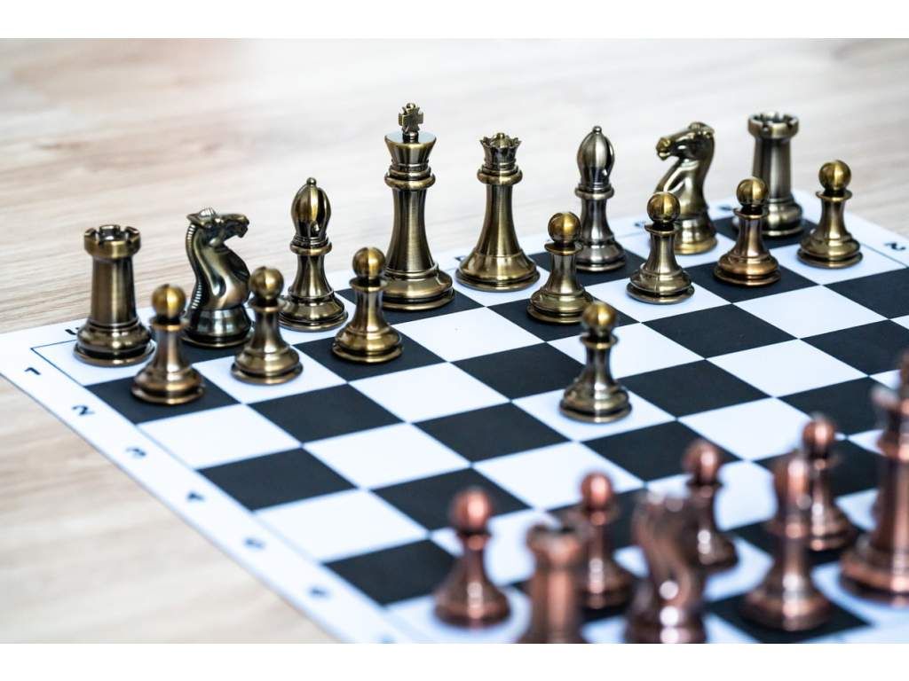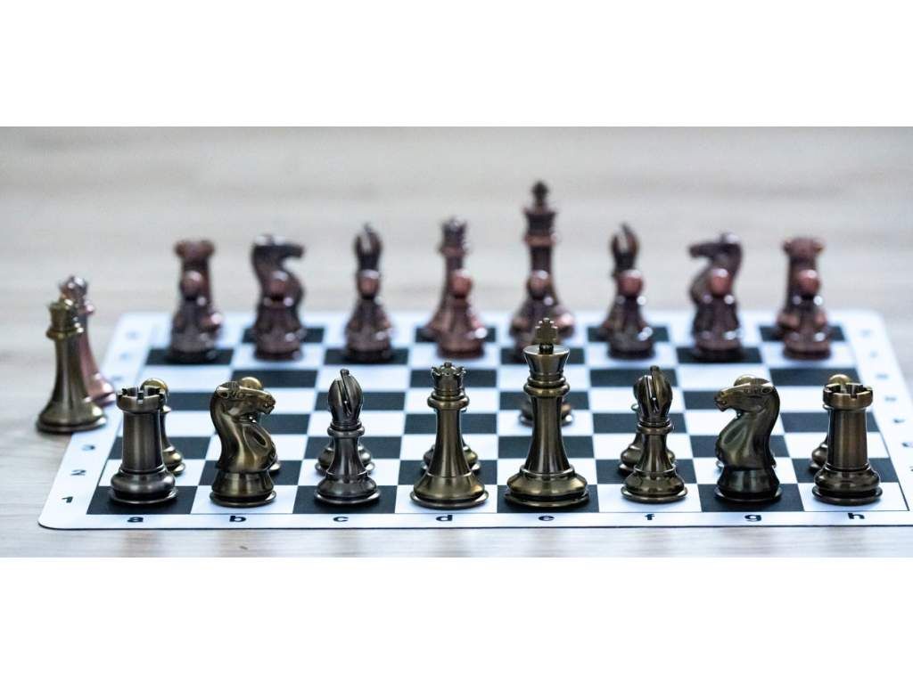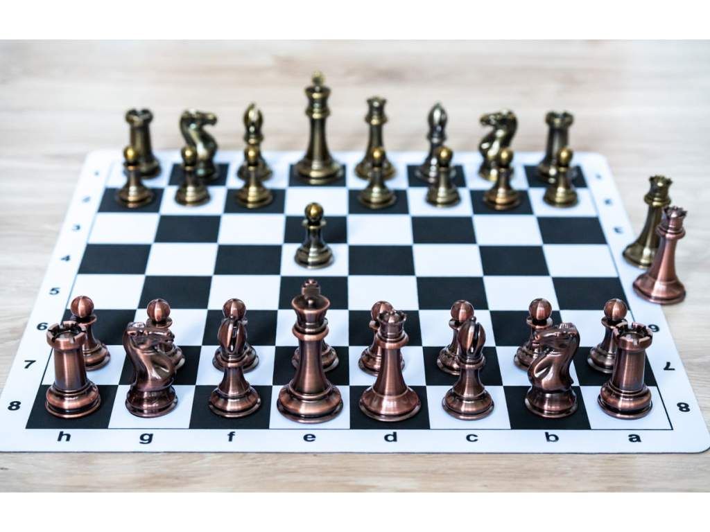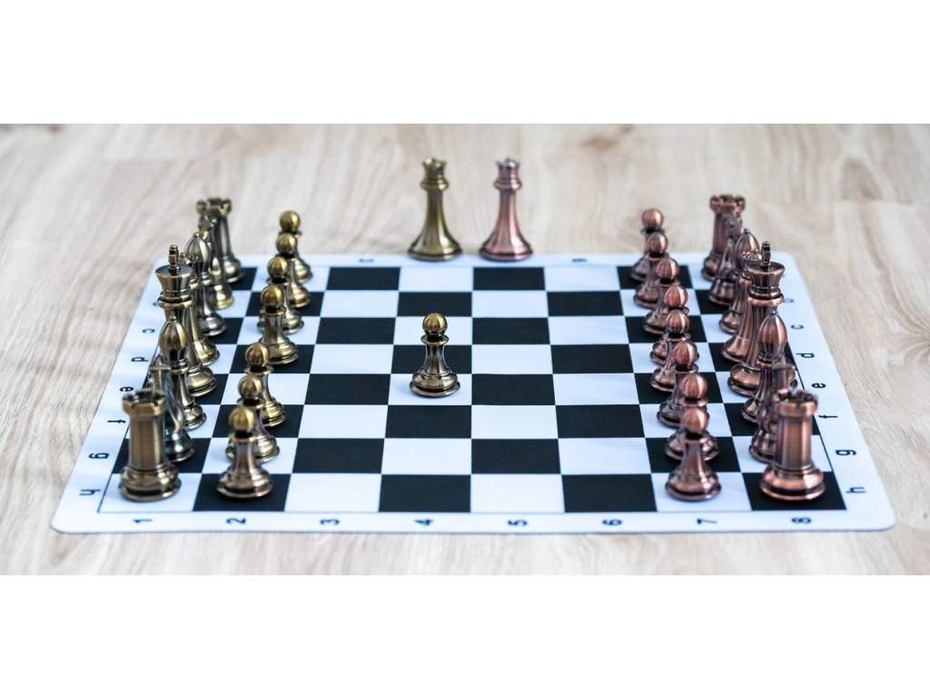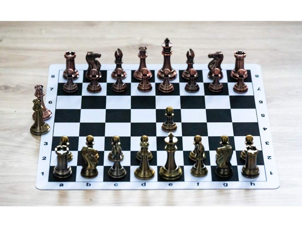 Portable Chess | Zinc Metal Pieces on Mouse Pad Style Board